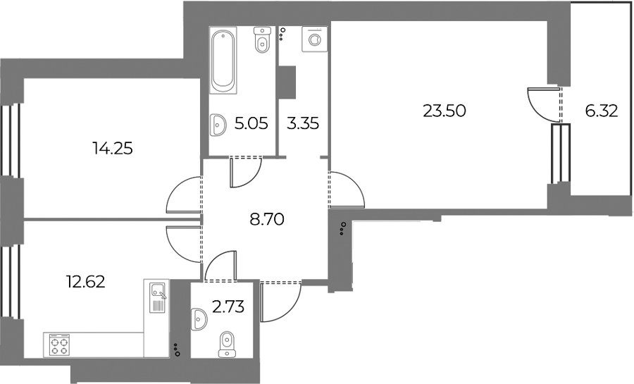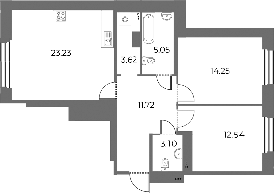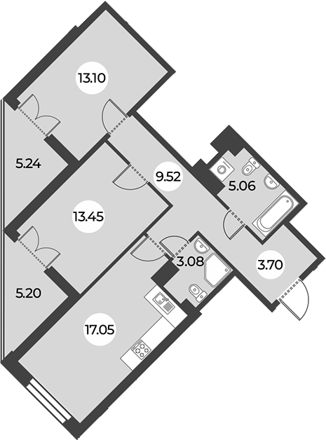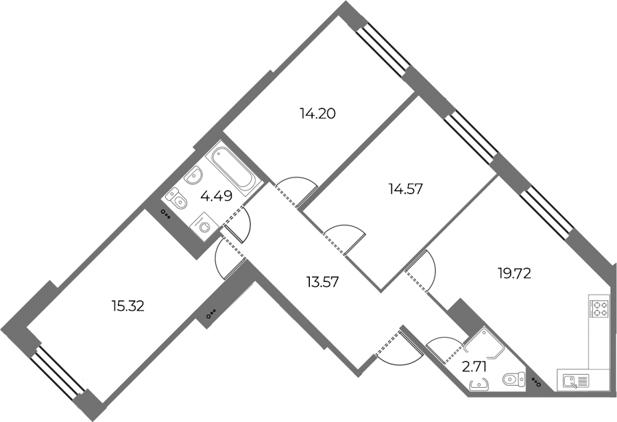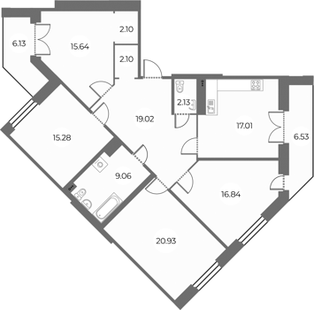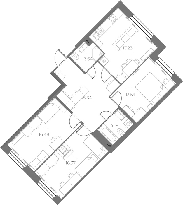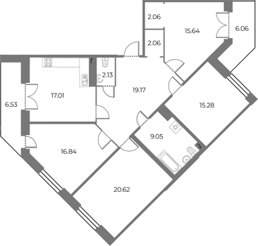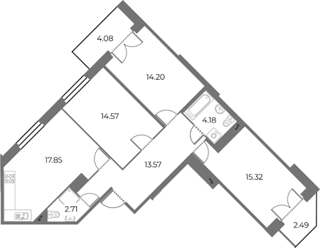 Площадь от 56.78 м2