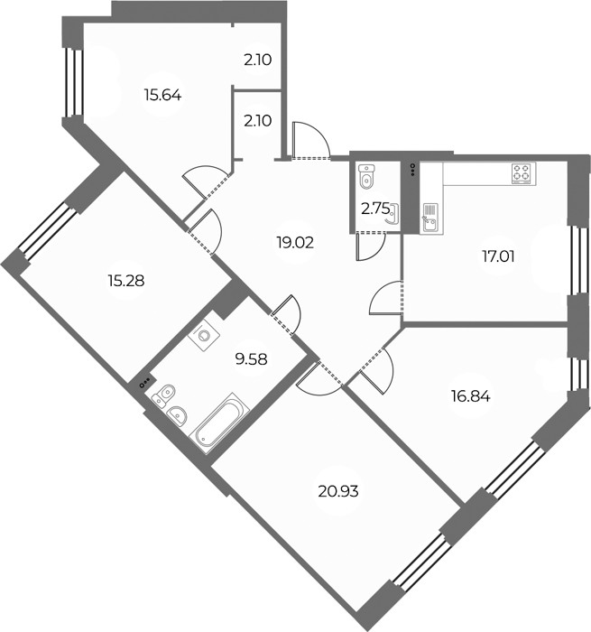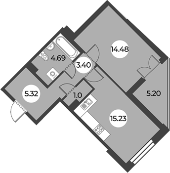 Площадь от 28.58 м2