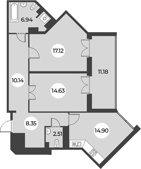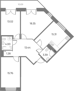 Площадь от 98.52 м2
