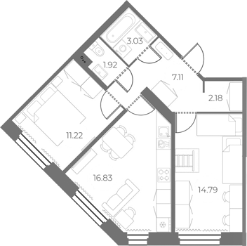 Площадь от 43.03 м2