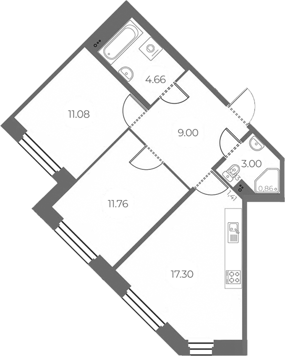 Площадь от 41.24 м2